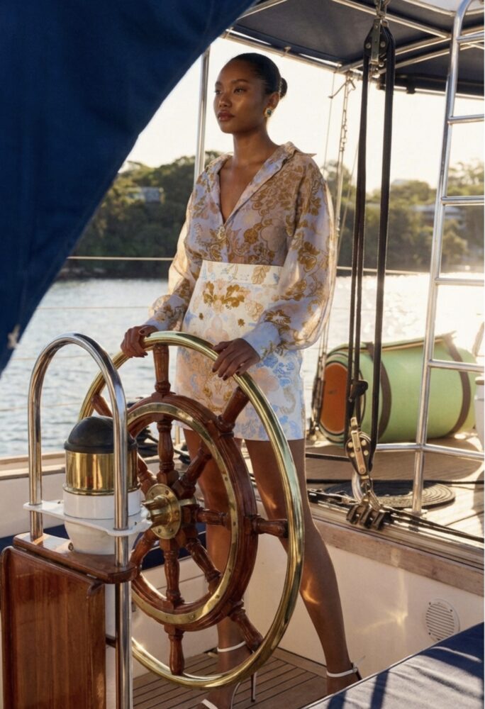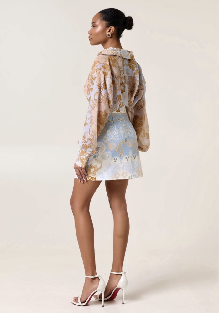 Λευκό χρώμα με εμπριμέ σχέδιο σε μπεζ και γαλάζιες αποχρώσεις