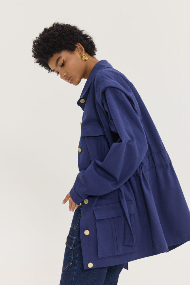Κλείνει μπροστά με μεταλλικό χρυσό κουμπί με ανάγλυφο το λογότυπο της εταιρείας