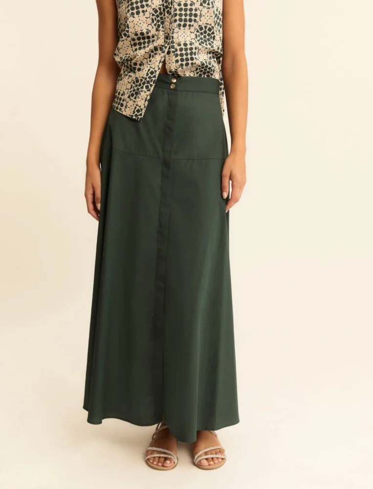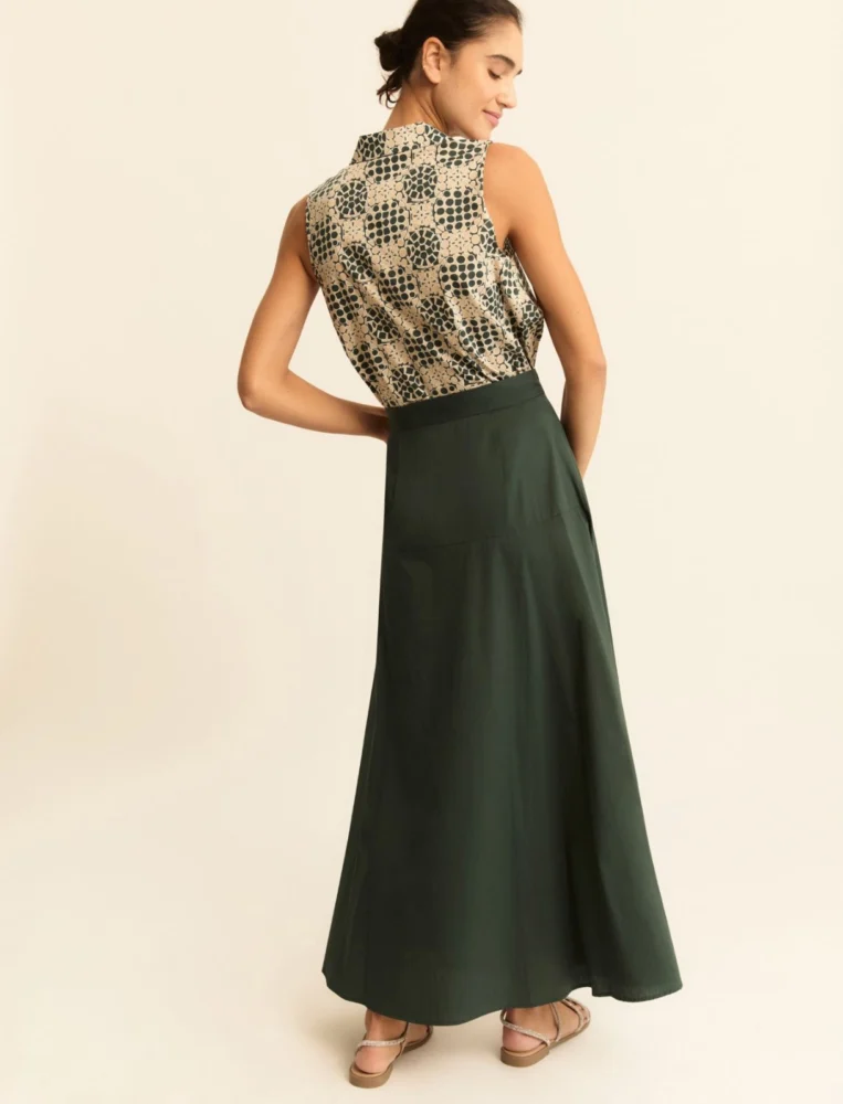 Emmnuvole Dark Green Flared Poplin Skirt – Emme Marella