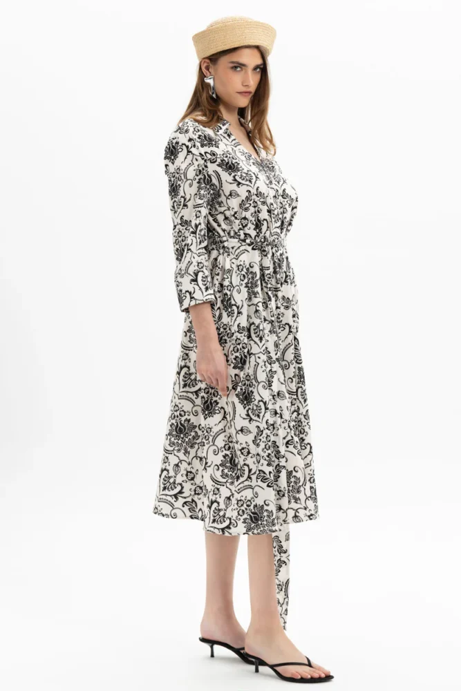 Διαθέτει αποσπώμενη δετή ζώνη στο ίδιο σχέδιο και θυλάκια στη μέση