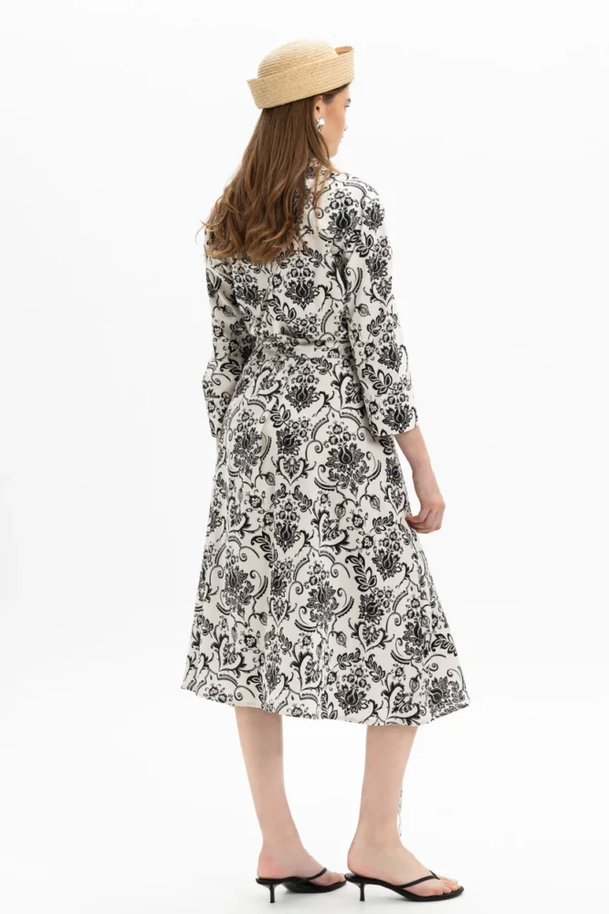 Χρώμα εκρού, με φλοράλ σχέδιο σε μαύρο χρώμα
