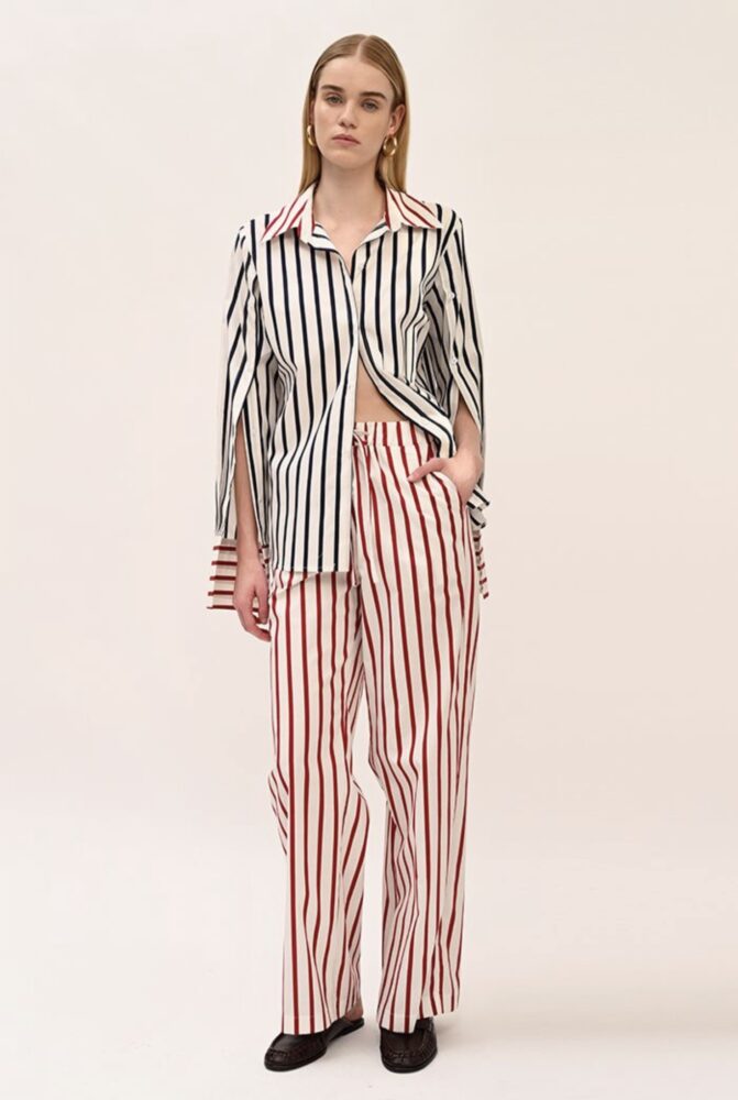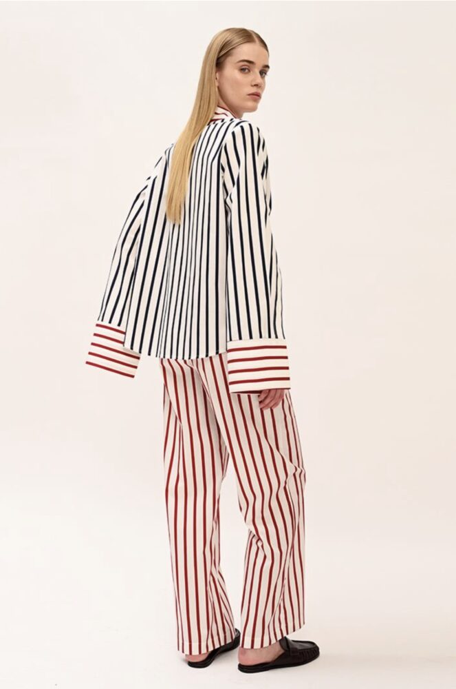 Αντίθεση με οριζόντιες, κόκκινες ρίγες στον γιακά και στις μανσέτες