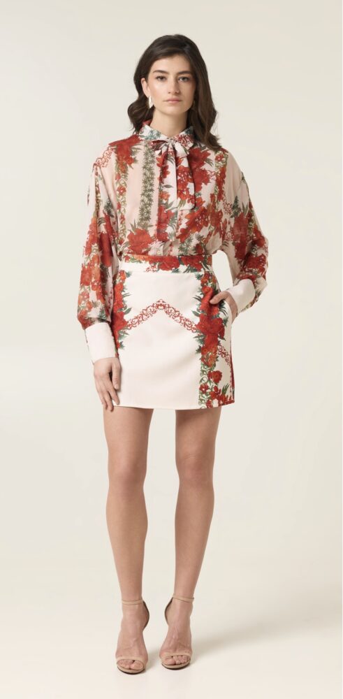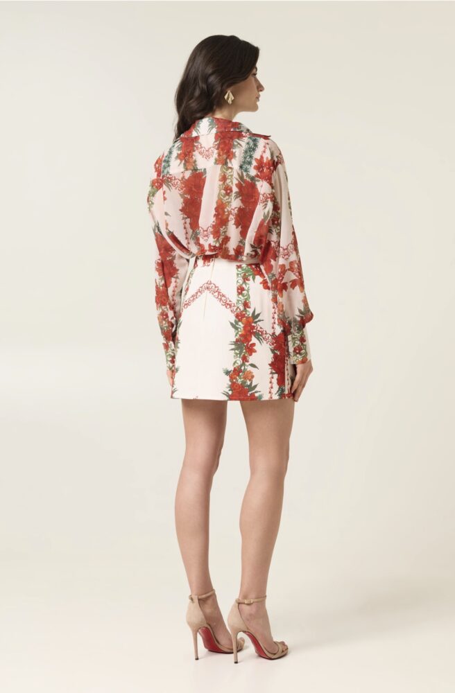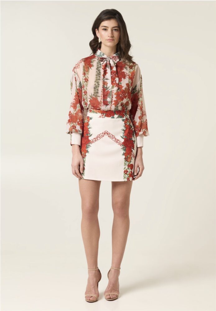 Υπόλευκο χρώμα με σχέδιο κόκκινα άνθη και πράσινα φύλλα